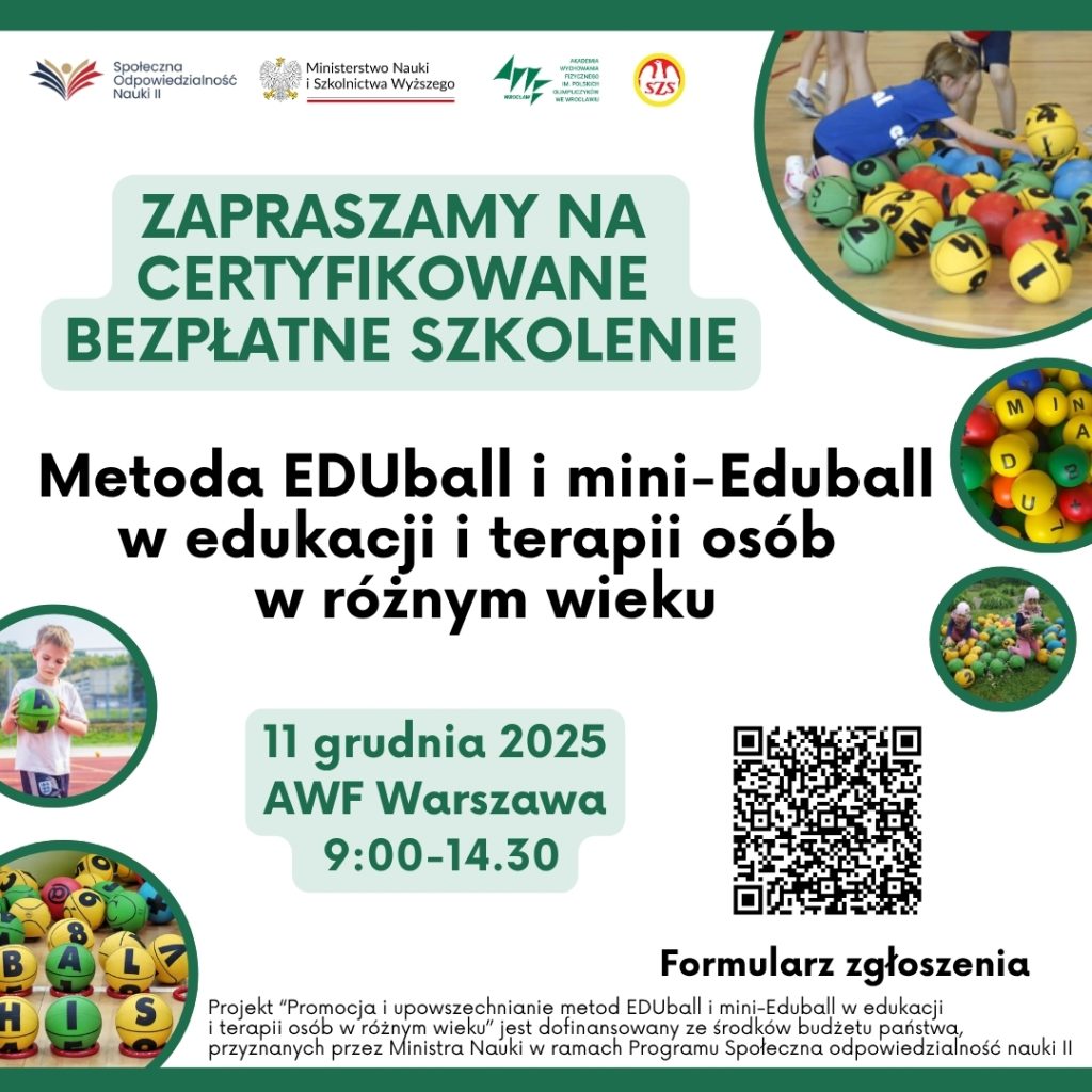 Akademia Wychowania Fizycznego im. Polskich Olimpijczyków we Wrocławiu we współpracy z Szkolnym Związkiem Sportowym i Akademią Wychowania Fizycznego Józefa Piłsudskiego w Warszawie zaprasza Państwa na konferencję poświęconą promocji i upowszechnieniu metod EDUball i mini-Eduball w edukacji i terapii osób w różnym wieku.